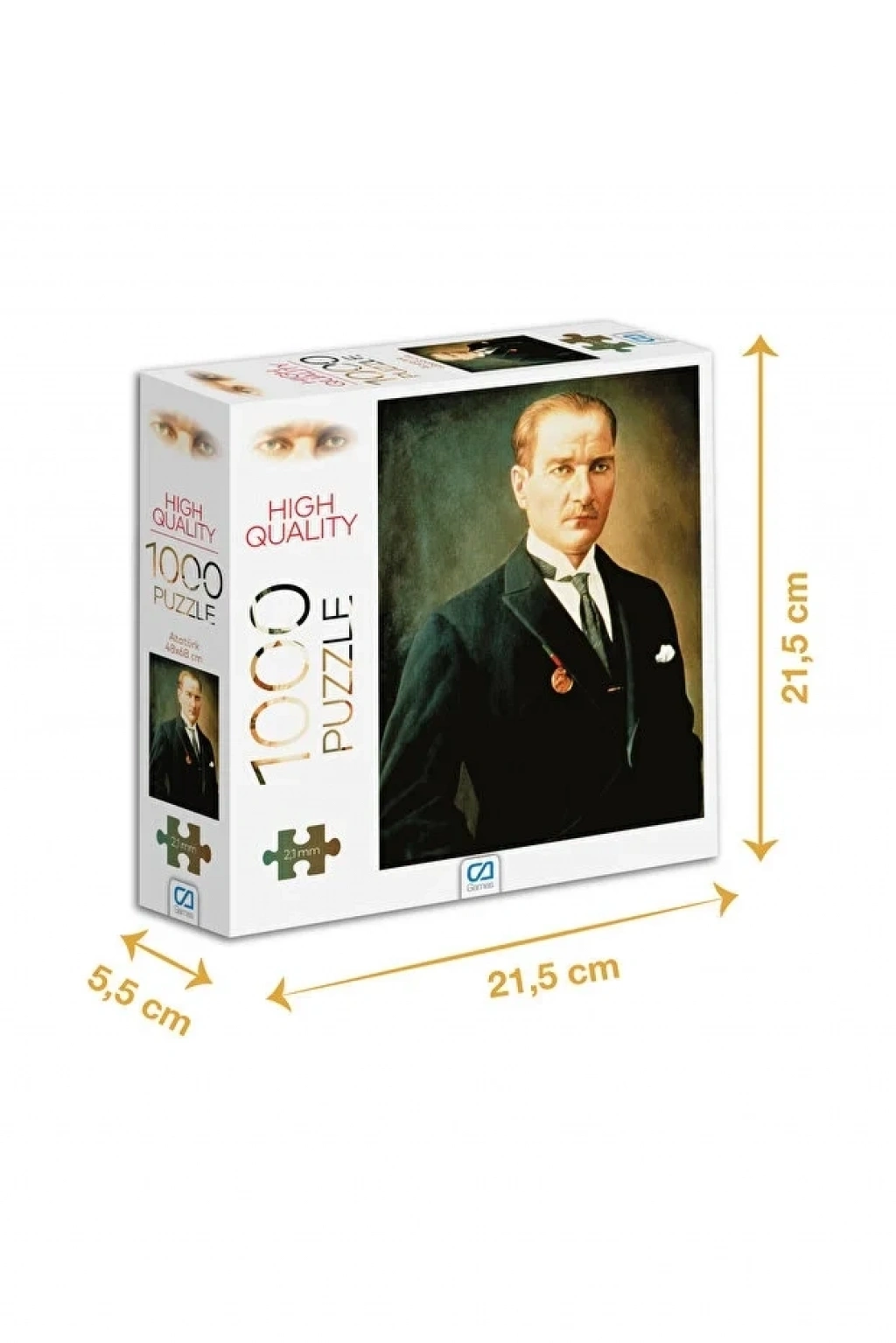 Atatürk Puzzle 1000 Parça ile hem anlamlı hem de prestijli bir puzzle deneyimi sunun. Türkiye Cumhuriyeti’nin kurucusu Mustafa Kemal Atatürk’ün etkileyici görseliyle hazırlanan bu özel tasarım, yüksek parça sayısı ile uzun süreli ve tatmin edici bir kullanım sağlar.