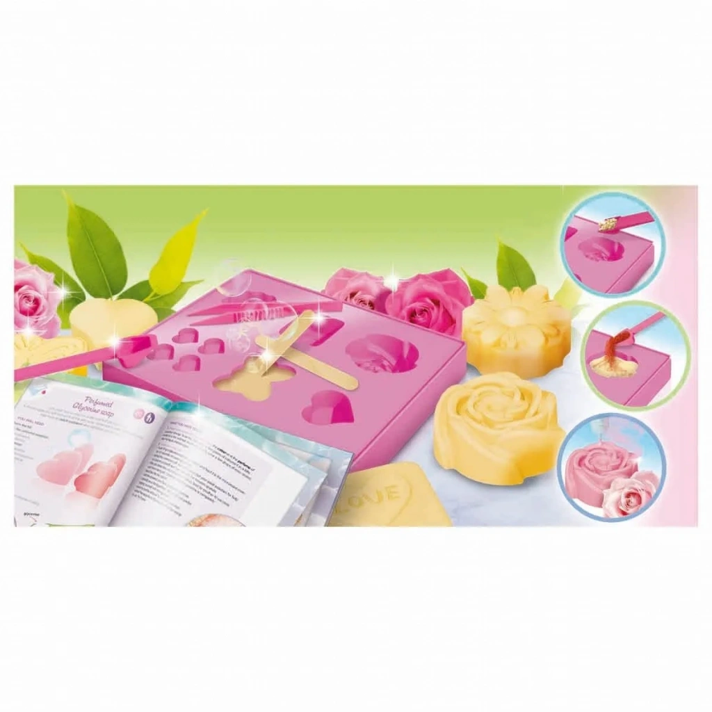Set içerisinde; içindekiler: sabun barları için kalıp, pul gliserin, deney araçları, parfümlü gıda aroması, kırmızı gıda boyası, resimli kılavuz bulunmaktadır.