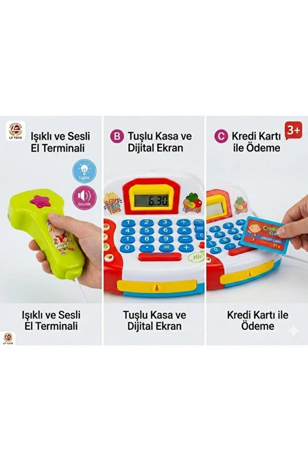 Dijital LCD ekran ve basılabilir tuşlar sayesinde çocuklar, ürünlerin fiyatlarını toplarken temel matematik becerilerini (sayılar, toplama, çıkarma) pratik edebilirler.
