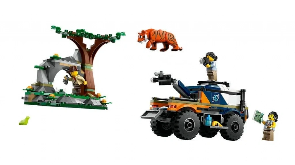 Kutuda ne var? – Bu LEGO® orman kaşifi oyun setinde, çocukların bir arazi kamyonu, orman mağarası ortamı, 3 maceracı minifigürü ve bir LEGO kaplan oyuncak figürü yapmaları için gereken her şey var;