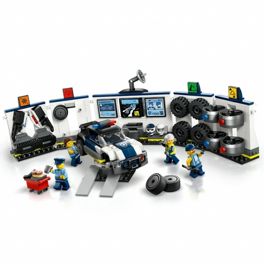 Kutuda ne var? – Modüler duvar bölümlerine sahip oyuncak garaj ve çeşitli özel aparatlara sahip polis kruvazörü, ayrıca polis şefi, sürücü ve 2 tamirci minifigürü içerir