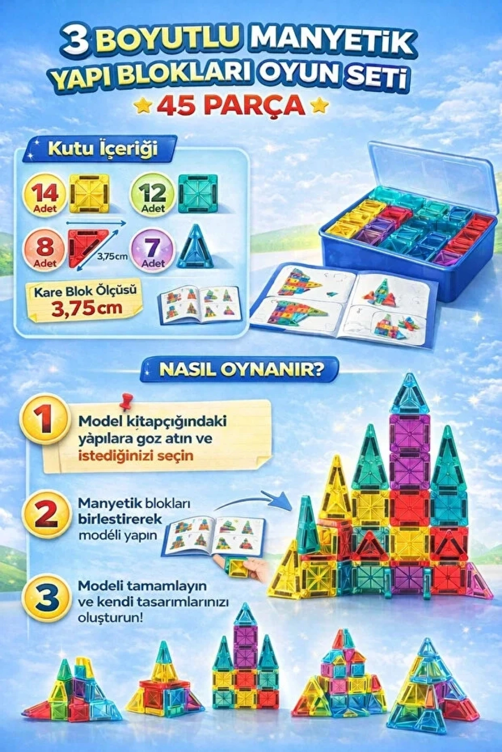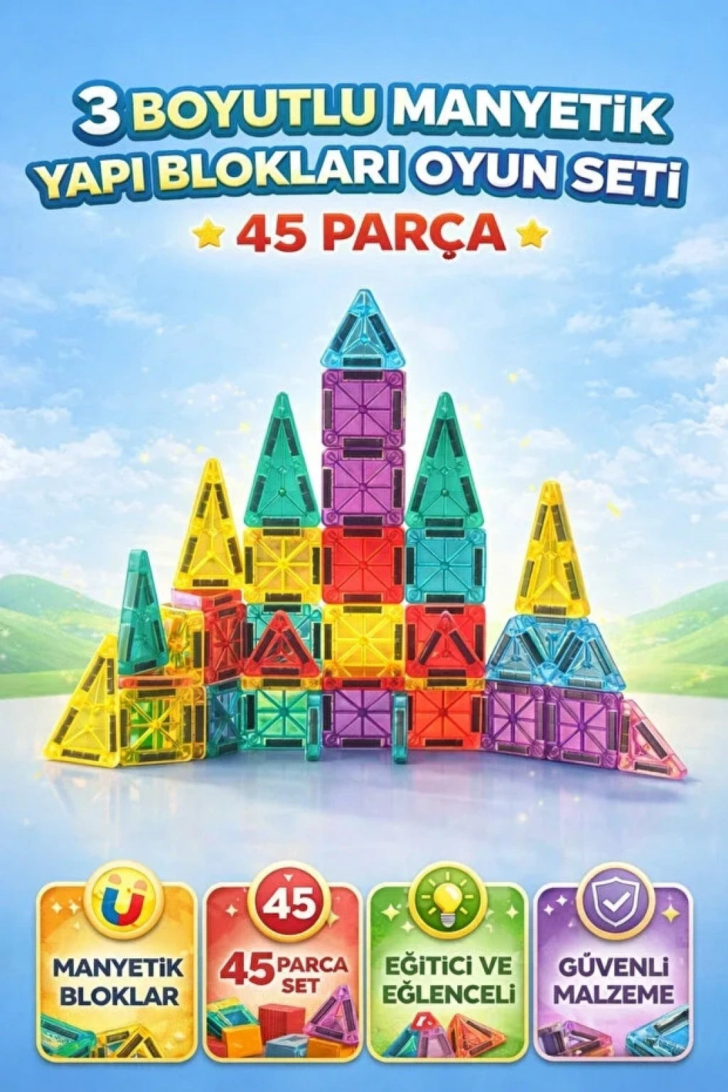 Kayra Oyuncak güvencesiyle sunulan Manyetik Yapı Blok Seti 45 Parça Metal Kutulu, eğitici oyuncak kategorisinde pratik kullanımı ve yüksek satış potansiyeli ile öne çıkan bir üründür.