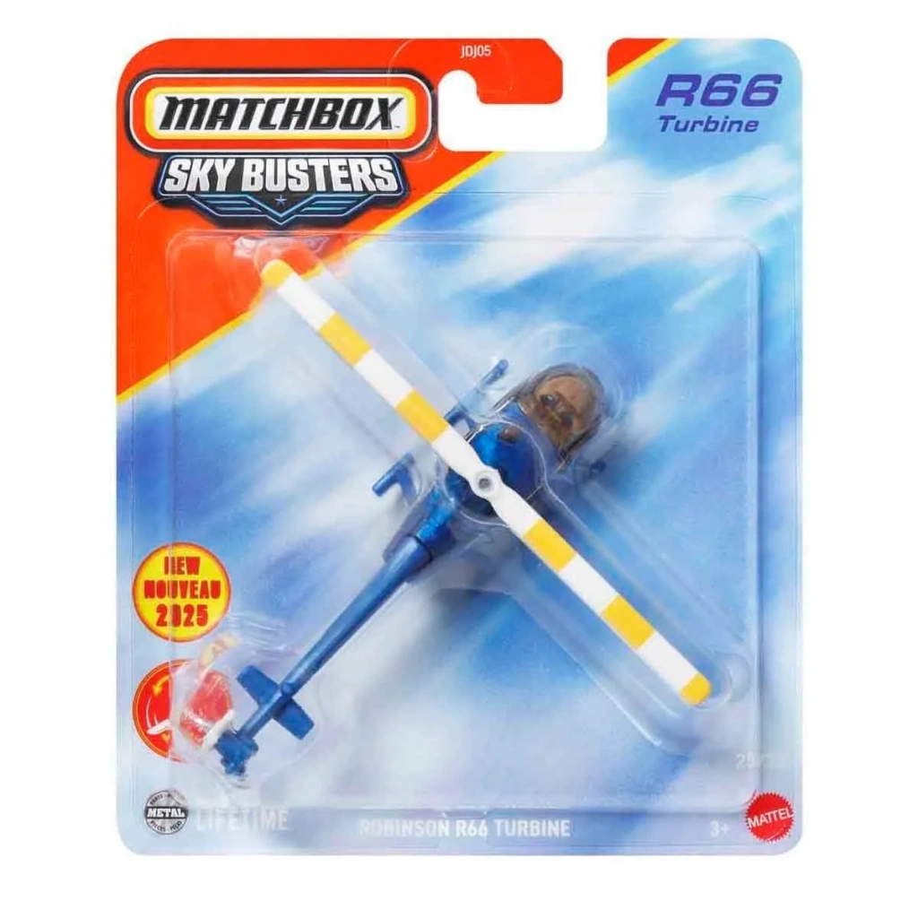 Matchbox Gökyüzü Araçları, havacılık dünyasından ilham alan uçak, helikopter ve benzeri hava araçlarını model araba kalitesiyle bir araya getiren eğlenceli ve koleksiyonluk bir seridir. Gerçeğe yakın tasarımları ve detaylı yapılarıyla hem oyun hem de sergileme amaçlı kullanım için uygundur.
