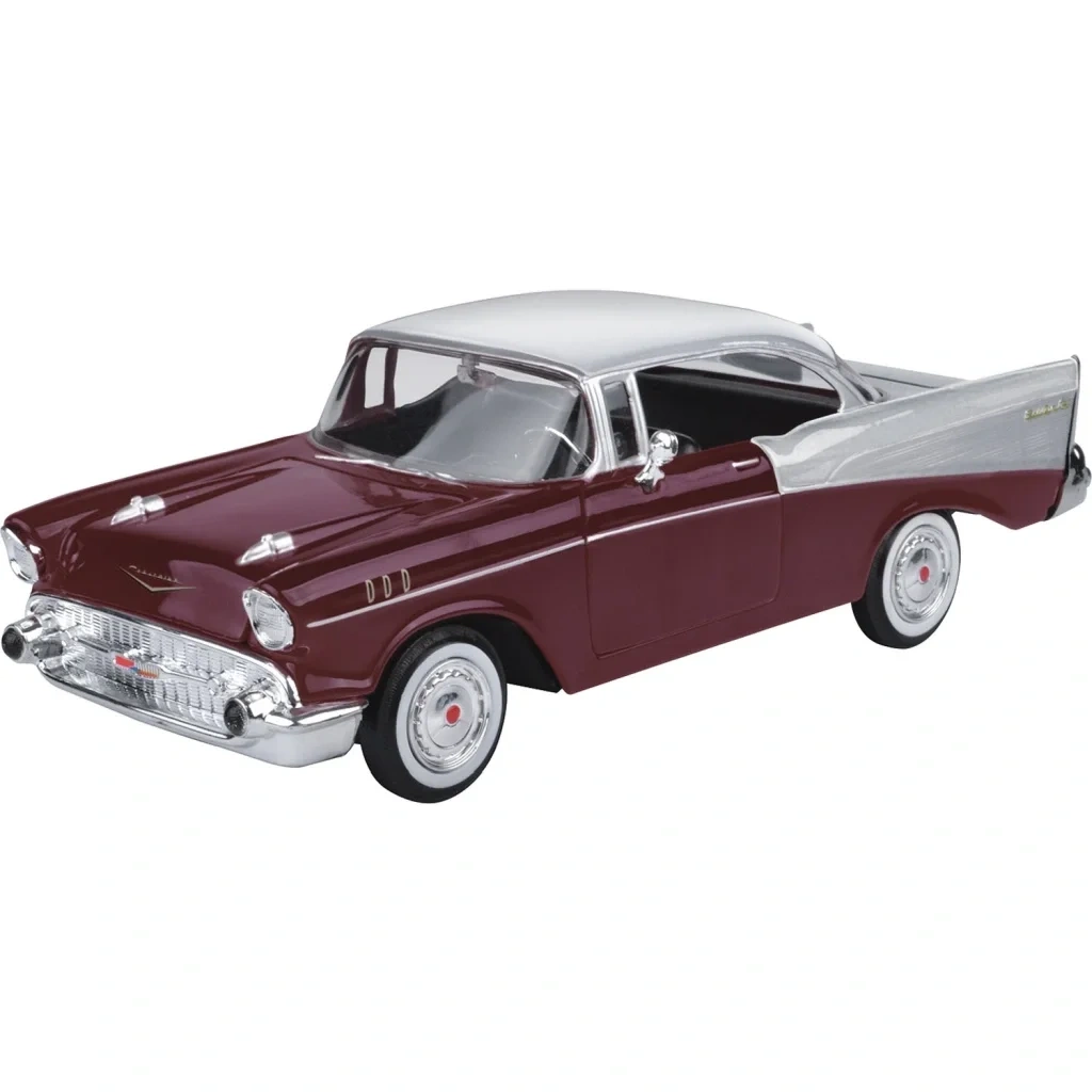 1957 Chevy Bel Air, Amerikan otomotiv tarihinin en tanınan modellerinden biridir. Motor Max 1/24 die-cast versiyonu; üç parçalı krom tamponları, kanatlı arka tasarımı ve özenli boyama kalitesiyle koleksiyoncular için kusursuz bir model sunar.