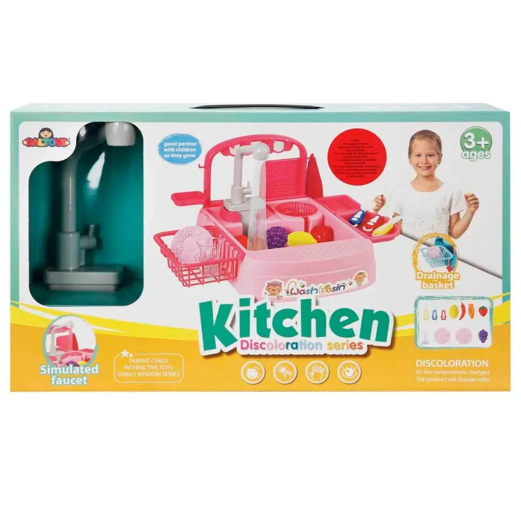 Tekrar iş başına koyulma vakti geldi. Tava, tabak, bardak… Hepsini yıkanmayı bekliyor. En sevdiğin dizi televizyonda başlamak üzere, hızlı olmalısın. Mavi Mutfak Lavabosu Oyun Seti, bu iş için en iyi seçimin olacaktır. Lavabonun altına koyduğun su, musluktan akar. Böylece bulaşıkları sudan geçirebilirsin. Ancak onları hemen yerlerine yerleştiremezsin, önce kurumalarını beklemelisin. Bunun için sudan geçen parçaları bulaşık sepetinde bekletebilirsin. Sıcaklık değiştikçe rengi değişen parçalar, eğlenceyi katlamaya aday! Bulaşıklar yıkandı, işler şimdi gerçekten bitti. Çayın demlenene kadar lezzetli bir meyve yemeyi hak ettin. O zaman artık keyif vakti!