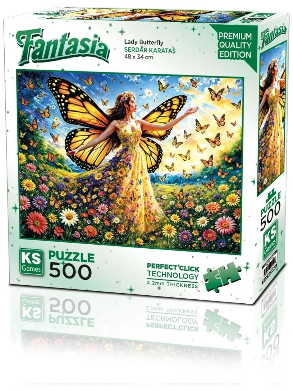 Puzzle 500 Parça – Lady Butterfly, zarif ve estetik tasarımıyla puzzle koleksiyonlarına özel bir dokunuş katar.