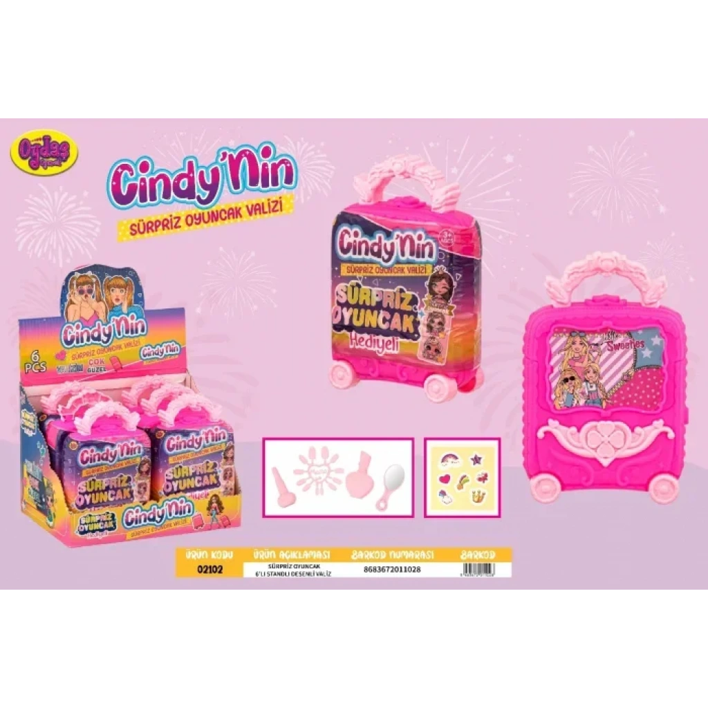 6’lı Stand Sürpriz Hediyeli Desenli Valiz, çocukların merak duygusunu artıran eğlenceli ve sürpriz içerikli bir oyuncak setidir. Her bir mini valizin içinde çocukları mutlu edecek çeşitli küçük oyuncak sürprizler bulunur. Renkli ve desenli valiz tasarımları hem estetik görünüm sunar hem de çocukların koleksiyon yapmasına imkân tanır.