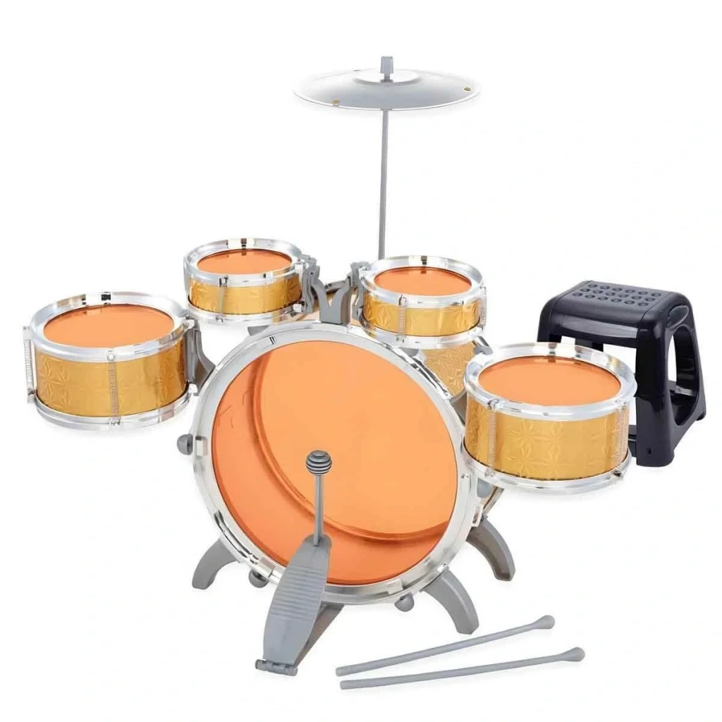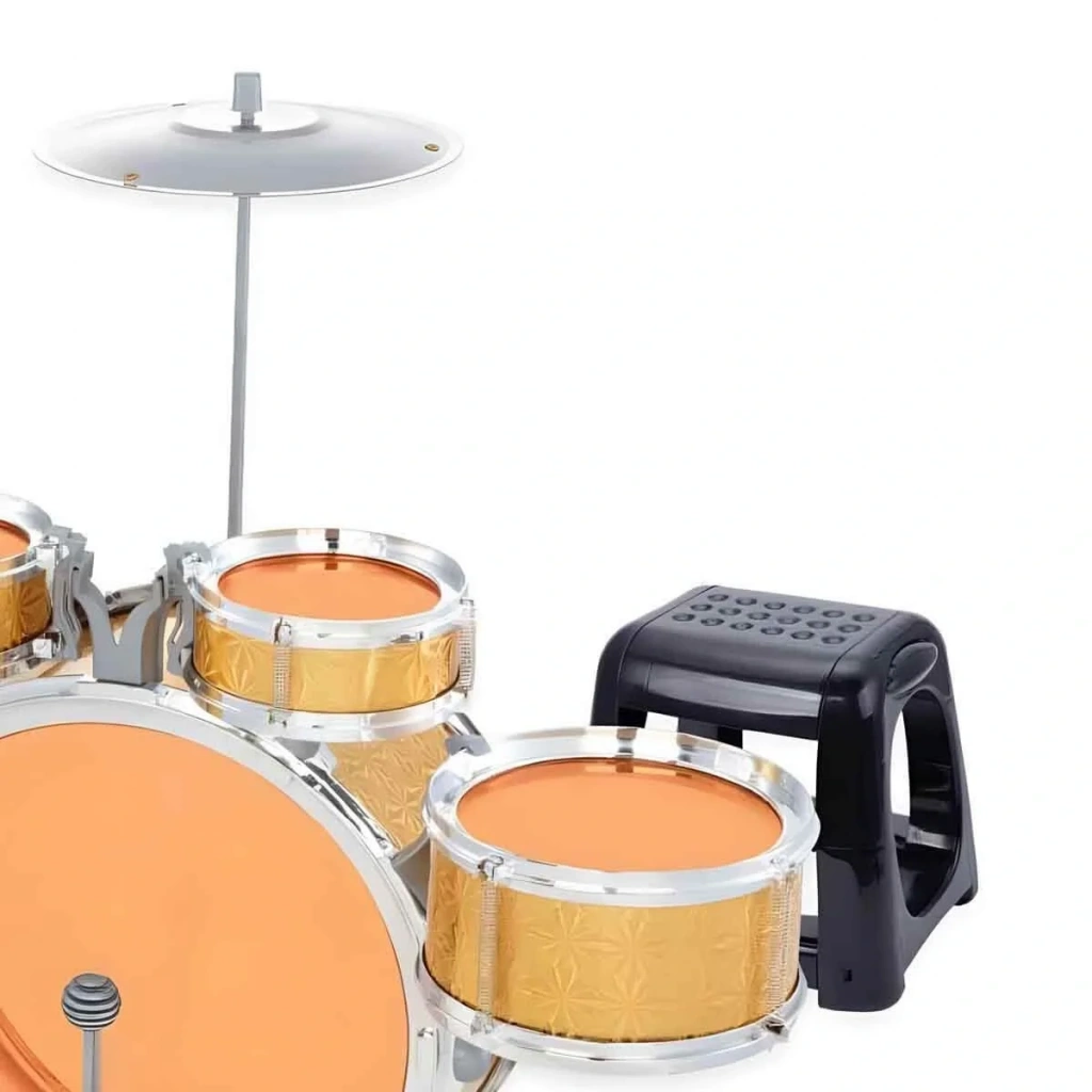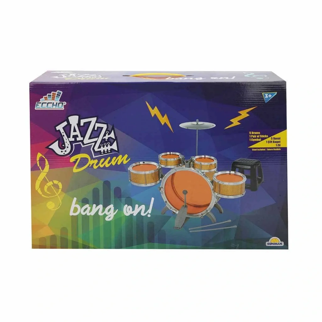 Paket içeriğinde davullar, trampet ve davul çubukları bulunur; çocuklar müziğin ritmini keşfederken yaratıcılıklarını geliştirebilir.