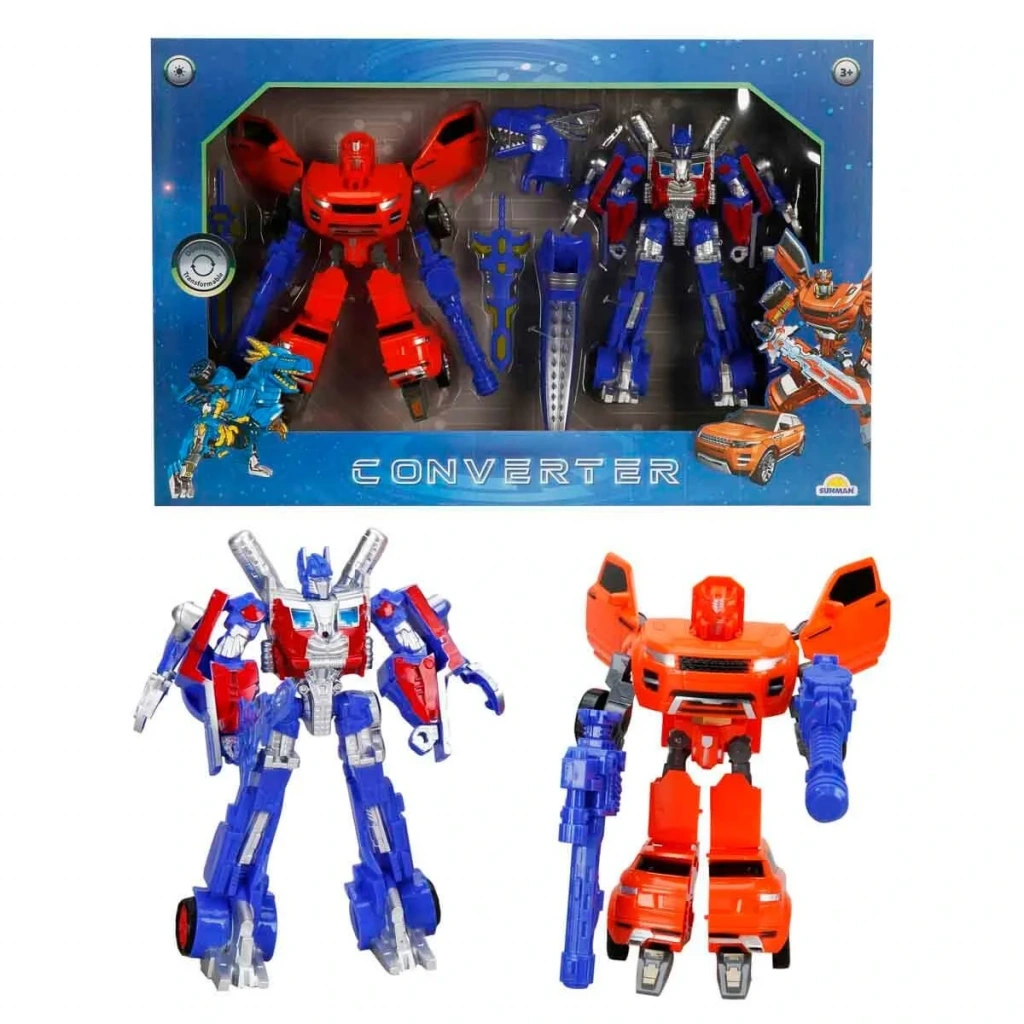 Işık efektlerine sahip bu robotlar; turuncu robot arabaya, mavi robot ise dinozora dönüşebilen özellikleri bulunmaktadır. Ayrıca ışık efektine sahip robot ile oyunu daha gerçekçi ve eğlenceli hale getirebilirsiniz.